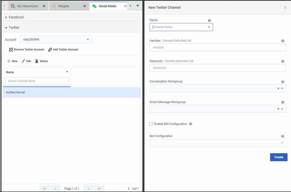 Tip: You can edit or delete the Twitter channel by selecting its label and clicking Edit or Delete in the Social Media view.
