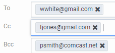 Address tokens: Notice that after you finish typing an address, it changes from plain text to an address token. An address token represents the address. You cannot edit an address token, but you can delete it by clicking the X.
