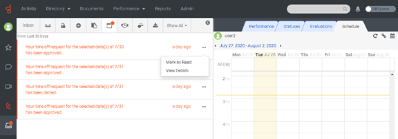 Your supervisor or other managers use Genesys Cloud Workforce Engagement Management to manage time off requests and shift trade off requests in Genesys Cloud. Agents are then alerted in Interaction Connect to changes in the status of their time off and shift trade requests.