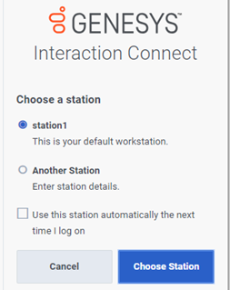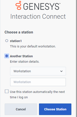Select No Station, if you are handling only interactions that do not require a station (like chats and emails) or if you require only the administrative and supervisor features in Interaction Connect. For more information, see Stationless Logon.