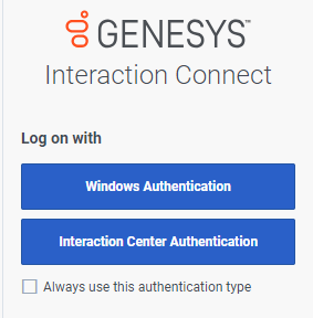 Click Interaction Center Authentication to use your CIC user name and password to log on.
