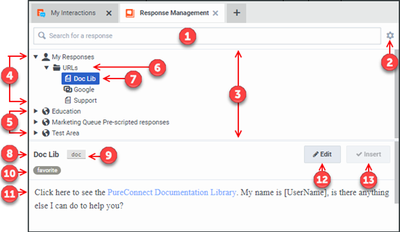 Your CIC administrator can create libraries of standard responses that all or selected CIC client users can use. Requirement: You need the appropriate Response Management View Access Control Right to use any of the system-wide response items. |
