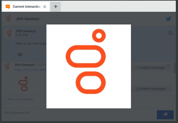 Interaction Connect supports inline images in incoming Social Media messages. You cannot insert an image in a reply. These images display at 50% of the available screen space. If the image is too large, it appears as a thumbnail.