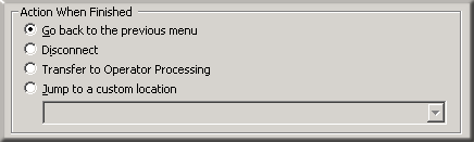 These options set the processing that occurs after the operation completes successfully, when flow of control leaves this node. Some tools terminate the call. Others pass the call object back. The options in this frame select processing to perform if the tool passes the call back to Attendant when execution is complete.