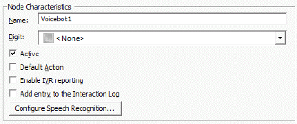 This option determines whether reporting data is collected or not when control passes through this node. Several IVR Reports summarize this information. IVR Reporting is inactive by default. Enable it to capture the date, time, and duration of time that the call remained in the node and its children. This option is hidden when the Attendant is connected to a server that does not have reporting installed.