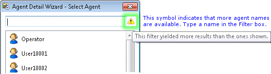 ) informs that more agent names are available. In that case, typing part of an agent's name in the Filter box locates the correct agent. When 20 or less agents exist in the system, the filter is not shown.